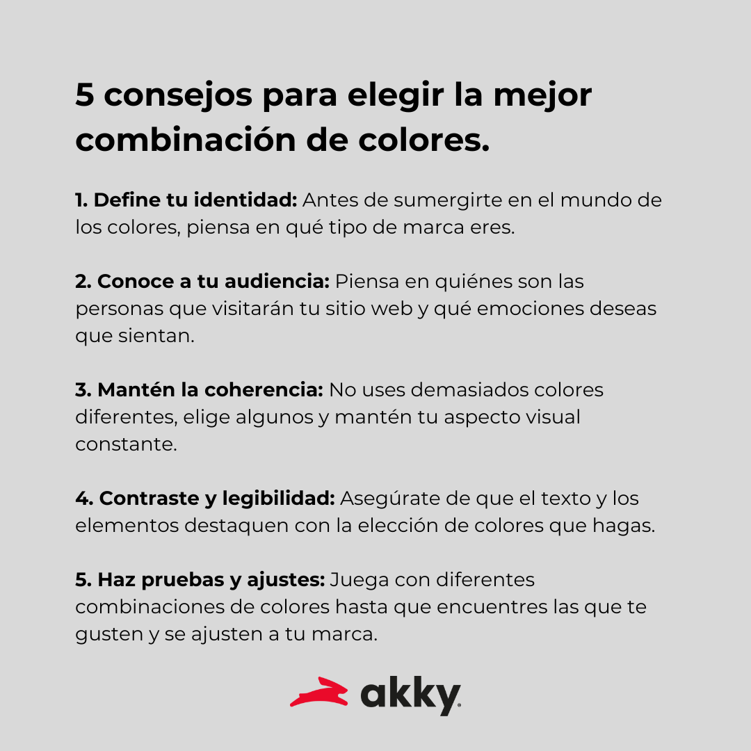 Recuerda que en Akky, puedes iniciar tu presencia en línea hoy mismo y llevar tu negocio al siguiente nivel con un sitio web que tenga la paleta de colores indicada para el éxito en Internet. ¡Incluso, podemos hacerlo por ti! ¡Contáctanos ahora y te daremos atención personalizada!